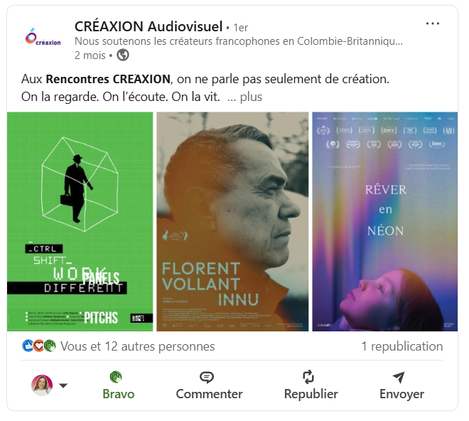 CRÉAXION est un organisme dédié au développement de l’audiovisuel francophone en Colombie-Britannique.